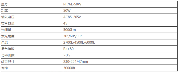 PF76L-50W產(chǎn)品參數(shù)